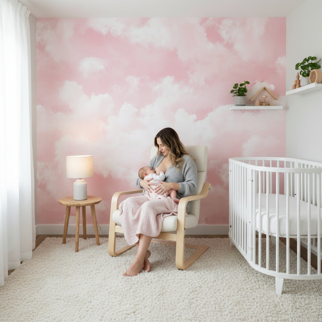 Um céu rosa mágico com nuvens brancas traz tranquilidade, paz e uma sensação de calma perfeita para o quarto infantil com Papel de Parede de Painel NUVEM SWEET.  Muito procurado para quarto de meninas, pois é delicado e traz um toque romântico combinando com móveis brancos, em madeira ou até mesmo móveis coloridos.